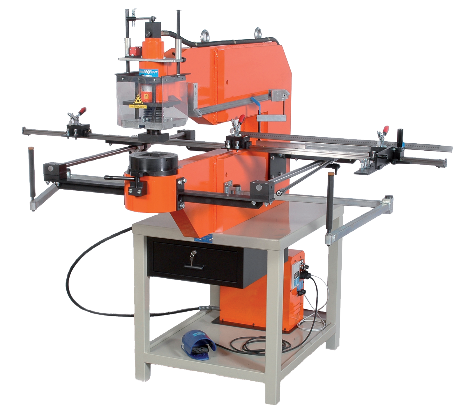 Studiata e realizzata esclusivamente per forature, questa foratrice oleodinamica ad elevata potenza è pratica e veloce perché evita le tracciature, operando su un apposito sistema di guide di precisione assi X-Y su cui viene fissato il pannello che è sostenuto da supporto mobile.